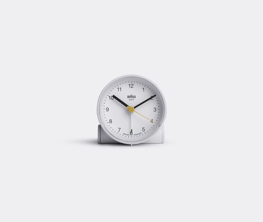 This alarm clock combines durability, function and precision with classic style. With a clear dial layout and round face, the classic white clock will blend in to any environment whilst still managing to be conspicuous in its simplicity. As is typical of the German brand, Braun have applied precision quartz movement to this battery-powered time piece.