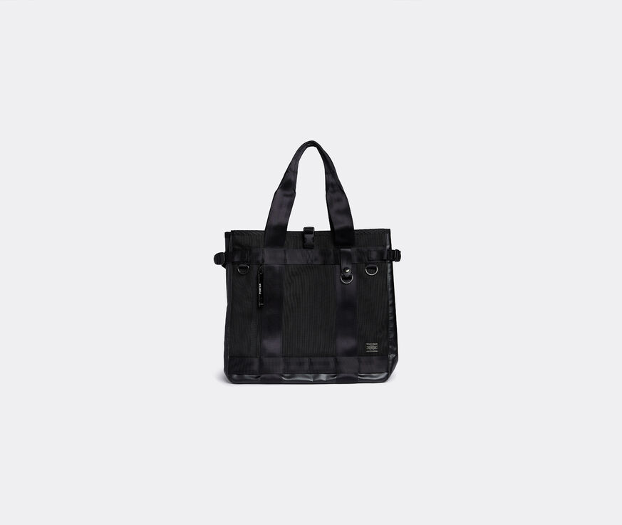 The ultimate in durability and convenience, Porter - Yoshida & Co's 'Heat' tote bag is the sum of many parts. Crafted from a mix of heat-, friction- and rip-resistant ballistic nylon and water repellent tarpaulin, the all black bag features a removable key ring and a Maglite, which is presented in a special case stored inside the bag. Thick nylon straps and D-shaped metal parts not only offer a utilitarian aesthetic, but also improve usability and durability.