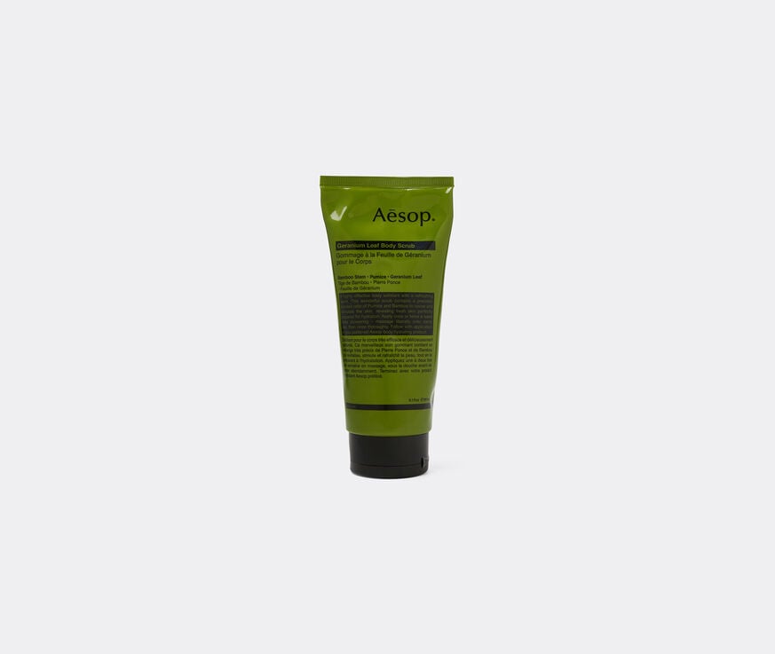 This botanical body scrub blends Aesop's beloved 'Geranium Leaf' fragrance with bamboo stem and pumice for an uplifting body polish. Renewing and hydrating — and leaving behind a lingering, green citrus aroma — the 'Geranium Leaf' body scrub can be paired with matching body balm for the full experience. The 180ml green tube encapsulates the brand's iconic minimalist aesthetic. Products are aluminium-free, cruelty-free, and vegan.