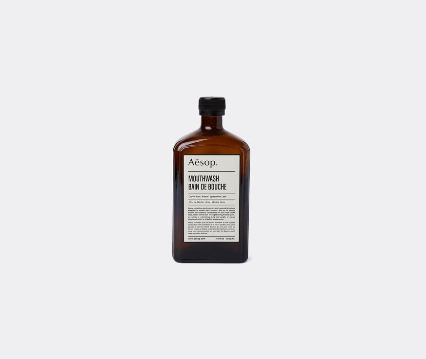This alcohol-free mouthwash combines clove bud, anise and spearmint leaf in a formula based on medicinal aromatics. Developed for impeccable oral hygiene, this herbaceous preparation is a bathroom cabinet essential that freshens breath without disturbing the mouth's natural pH. The 500ml amber bottle reflects Aesop’s minimalist apothecary-style aesthetic. Products are aluminium-free, cruelty-free, and vegan.