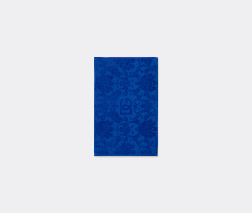 Part of a range of covetable bathwear by Dolce&Gabbana Casa, this finely decorated jacquard mat features the D&G logo surrounded by an ornate floral damask pattern. The 100% terry cotton material ensures a soft and sumptuous experience under foot. Combining the expressive philosophy of the Italian design house with unparalleled comfort and quality, this elegant bath mat in blue can be paired with coordinating towels and loungewear for the full effect.