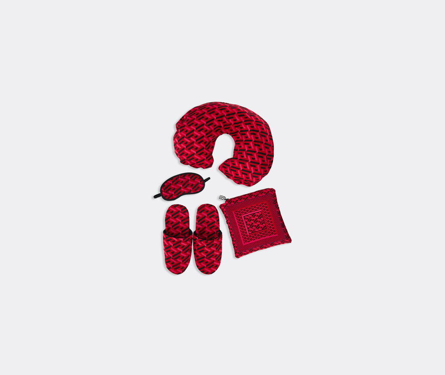 Combining an eye mask, pillow and pair of slippers, Versace's 'Greca' travel set for men offer a seamless injection of luxe into travel experiences. Featuring the Italian brand's 'Greca' print — a clean geometric pattern — across the surface of each item, the chic red and fuchsia set brings Versace's signature brand of Italian opulence on the road. Slippers are provided in size 41.