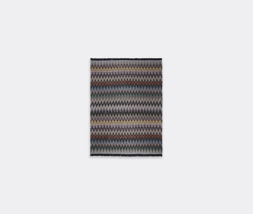 The distinct zigzag pattern of Italian fashion house Missoni is transported to home décor in the 'Chen' throw. Featuring one of the brand's signature jacquard techniques across its surface, this large wool backed blanket is defined by a multicolored zigzag motif in varying dark shades with additional sequin appliqué for depth and texture.