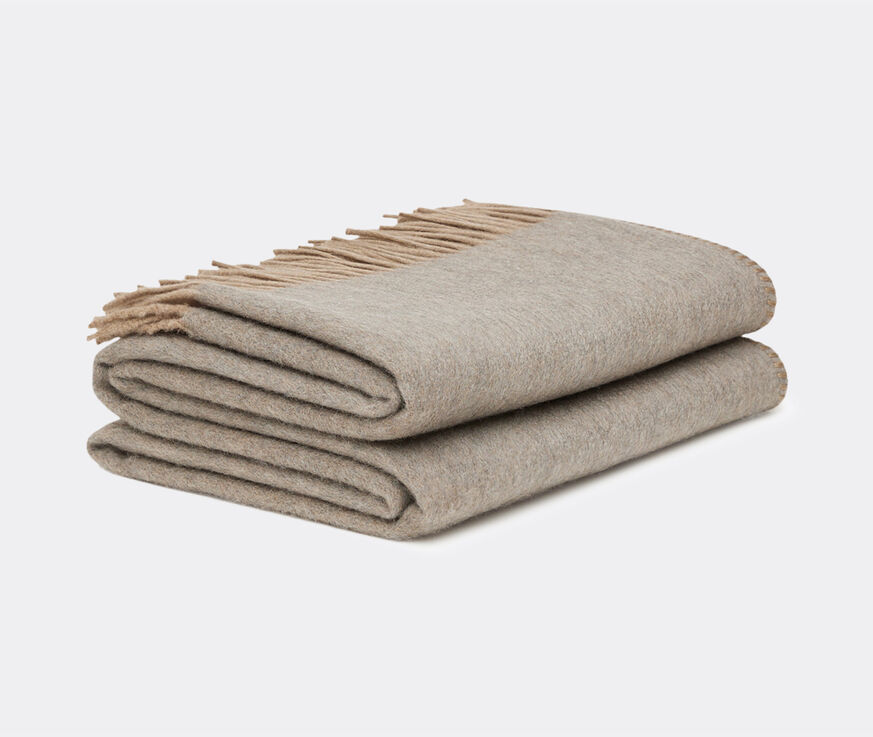 Fine 100% cashmere is woven into this sumptuous throw from Alonpi. Made in Italy and composed from a soft and light yarn in a muted shade of grey on one side and beige on the other, the 'Melrose' throw is elevated by the addition of a lightly colored fringe and handcrafted edges for a luxe accent suited to both living spaces and bedrooms.