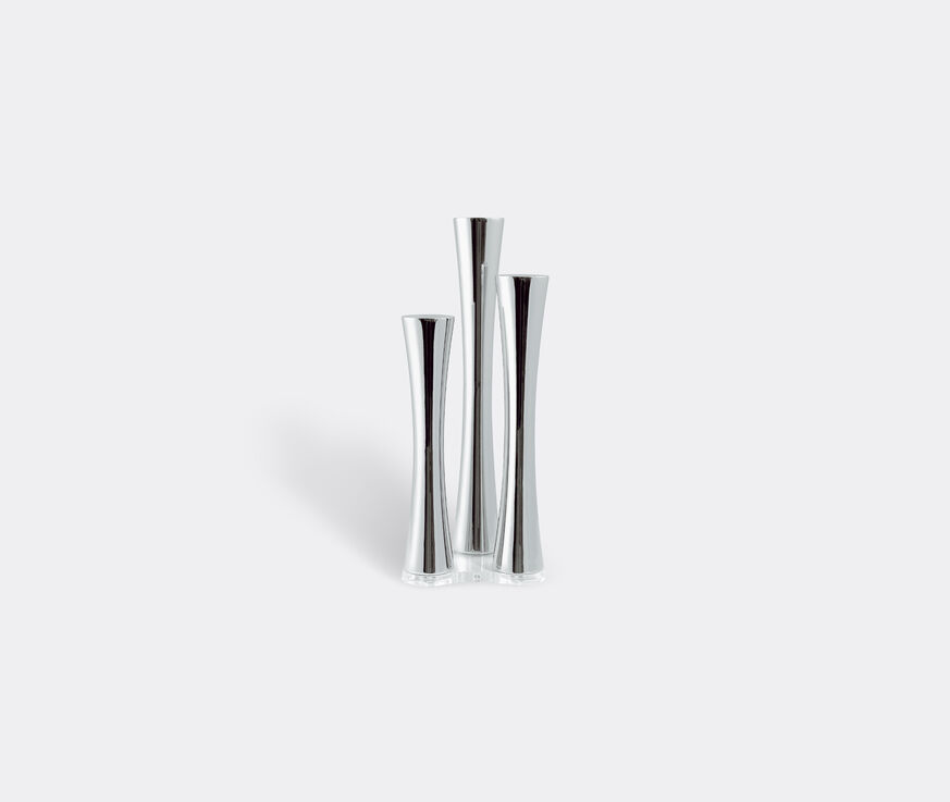 Reminiscent of 1940s aesthetics, the curved features of Sambonet's 'Bamboo' series are the collection's most defining characteristics. An original oval accent introduces a modern and contemporary edge to items like this polished three light candelabra, designed by Centro Stile Sambonet.