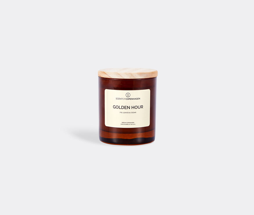 Instantly recognisable for their reusable white glass jars with wood lids, Scent of Copenhagen's candles are just as distinct for their signature vessels as they are for their exceptional scents. Hand poured and crafted using high quality natural soy wax, the 'Golden Hour' candle brings together top notes of pine, fig and olive blossom with middle notes of ginger and vetiver, and base notes of musk and cedarwood.