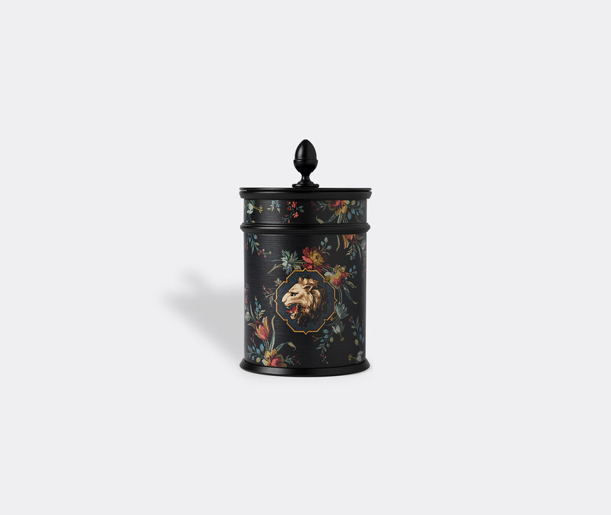 Taken from a wider collection of scented candles where the natural world has inspired a series of decorative motifs, Gucci's 'Grotesque Garden' mini basket candle combines a signature House theme with the brand's 'Esotericum' scent. Presented in a black porcelain container decorated with floral details and paired with a matching lid topped by a lion's head, the wax candle fills spaces with a rich scent that is fragranced with botanical flowers.