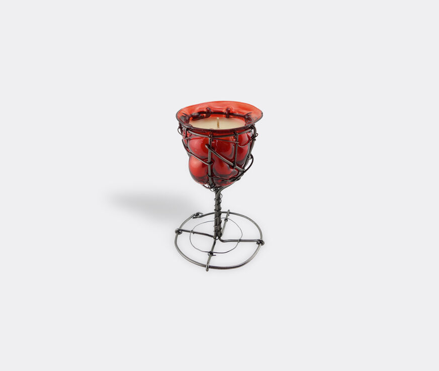 Housed in a red blown glass container elevated atop a winding black metal stands, Vanessa Mitrani's 'Image' candle almost resembles a glass of wine. Scented with the fragrance of orange blossom and with a burn time of up to 36 hours, the candle offers a memorable accent and a lasting impression to interior spaces.