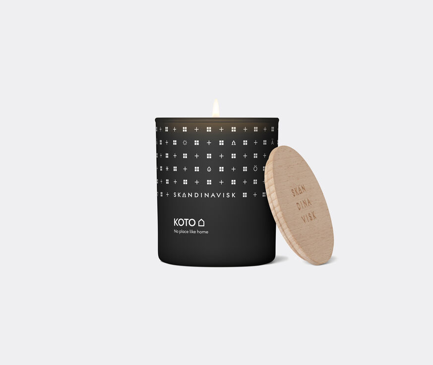 A Swedish rapeseed wax blend perfumed with notes of vanilla beans, dried orange peel, Baltic amber and vintage leather furniture forms the body of Skandinavisk's 'Koto' candle, which takes its name from the Old Finnish word for 'home'. Featuring a single wick and presented in a black painted glass vessel topped with an engraved beechwood lid, the 200g candle is a lasting luxe treat that will scent rooms for hours on end.