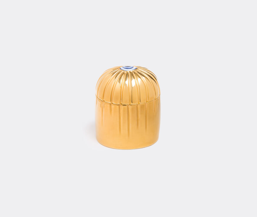 For centuries, the eye has acted as a popular talisman, with its symbolism rooted in a belief of its power to ward off negativity, protect, heighten awareness and encourage wearers to seek beauty in the world around them. The 'Lito Or' candle from L'Objet is designed by Elad Yifrach and presents a surreal yet elegant accessory that introduces this respected symbol into the home, while also scenting surrounding spaces with a green vetiver fragrance. The handcrafted paraffin wax candle is presented in a 24-karat gold plated porcelain holder, which is inlaid with a resin blue eye.