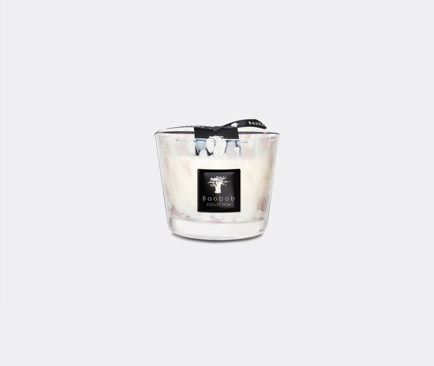 Baobab Collection's 'Pearls White' candle mirrors the same characteristics of the precious object it is named after. Purity and elegance are displayed via the candle's graceful glass container, where shades of white and pink are combined for a shimmered effect. Inside, an equally refined scent awaits, with notes of orchid, freesia and musk coalescing with jasmine for a further nod to the feminine character of white pearls. This small candle has a burn time of 60 hours.