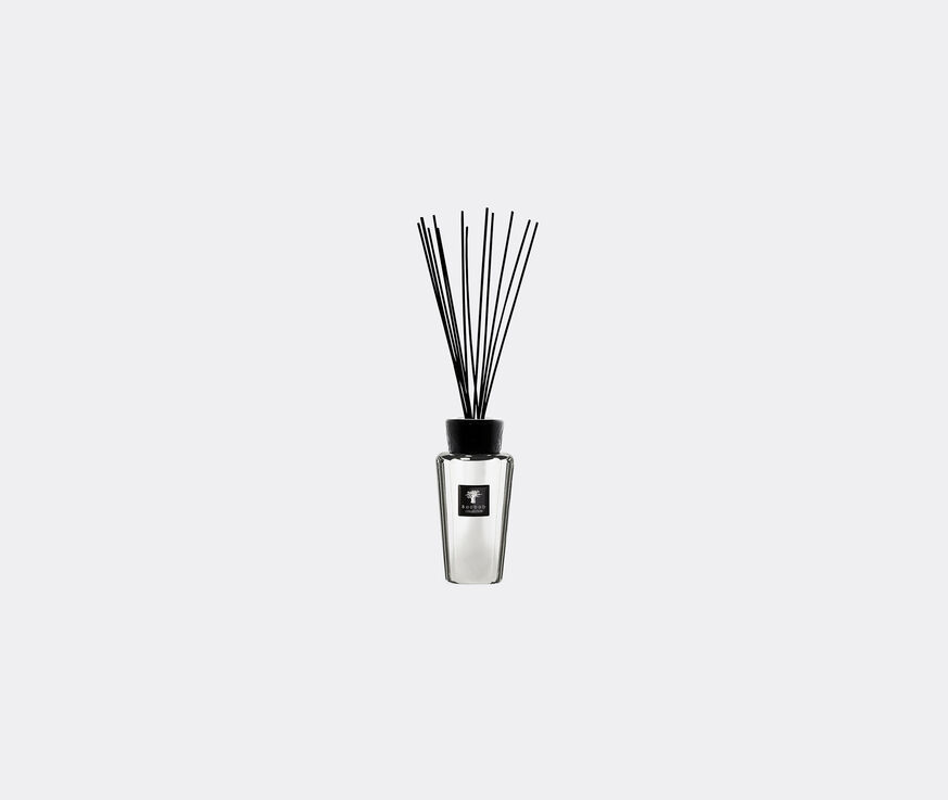 The 'Platinum' scent diffuser delivers an olfactory experience that blends enlivening grapefruit with clean vetiver and rich base notes of amber and nutmeg for a clean masculine fragrance. This luxurious scent by Baobab Collection brings a refined depth and grace to any room. The silver painted diffuser bottle is finished with a black bakelite cap and engraved with a root motif. Both perfume and sticks are included.