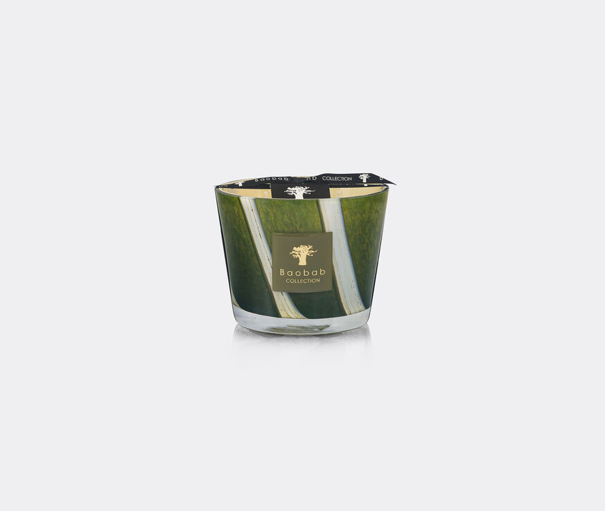 Built around woody base notes, Baobab Collection's family of 'Woods' scented candles create grounding olfactory experiences with a touch of mystery. Among these structural scents is 'Woods Sherwood', which pays homage to the ancient Royal Forest in England, made famous by the legend of Robin Hood. Clean, aromatic notes of cedar and rosemary blend with a rich and grassy vetiver base. The 1.3kg candle fills rooms with the atmosphere of the forest for 60 hours. Its artisanally-crafted glass vessel, which can be repurposed once the candle has burnt down, manifests in green and white print that subtly reveals the texture of tree bark.