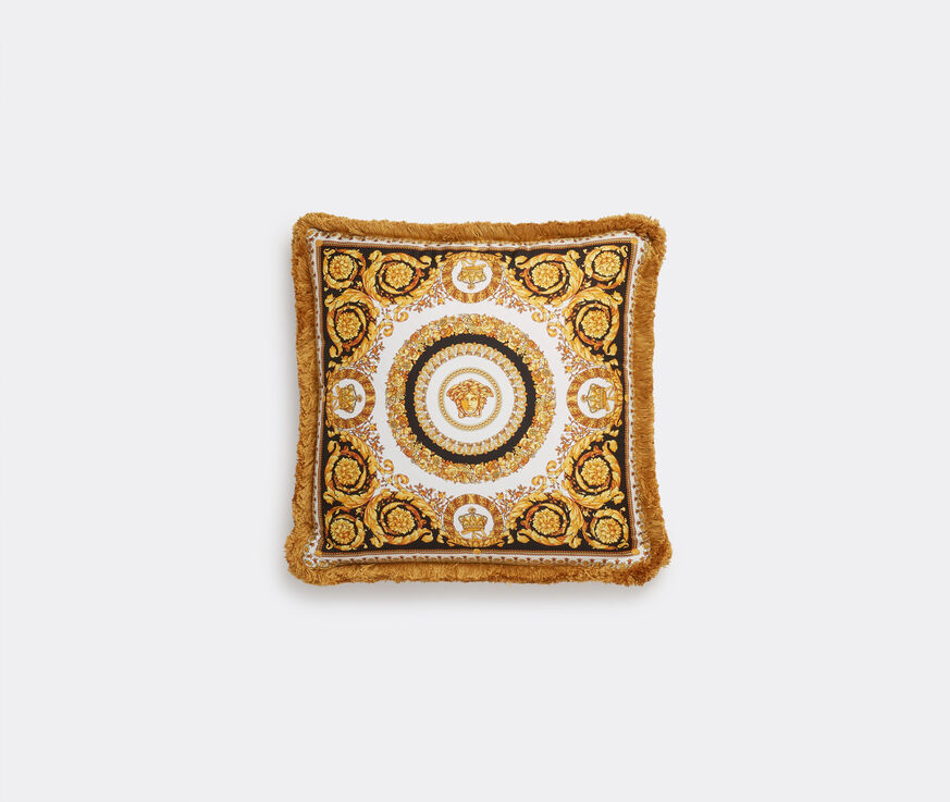 Versace's signature glamour is brought to the home with the brand's 'La Crete De Fleur' cushion — an elegant piece adorned with the collection's distinct floral motif in a neoclassical style. Crafted from fine silk, the reversible cushion combines Versace's signature shades of white, black and gold for the full impact of the house's bold luxury.