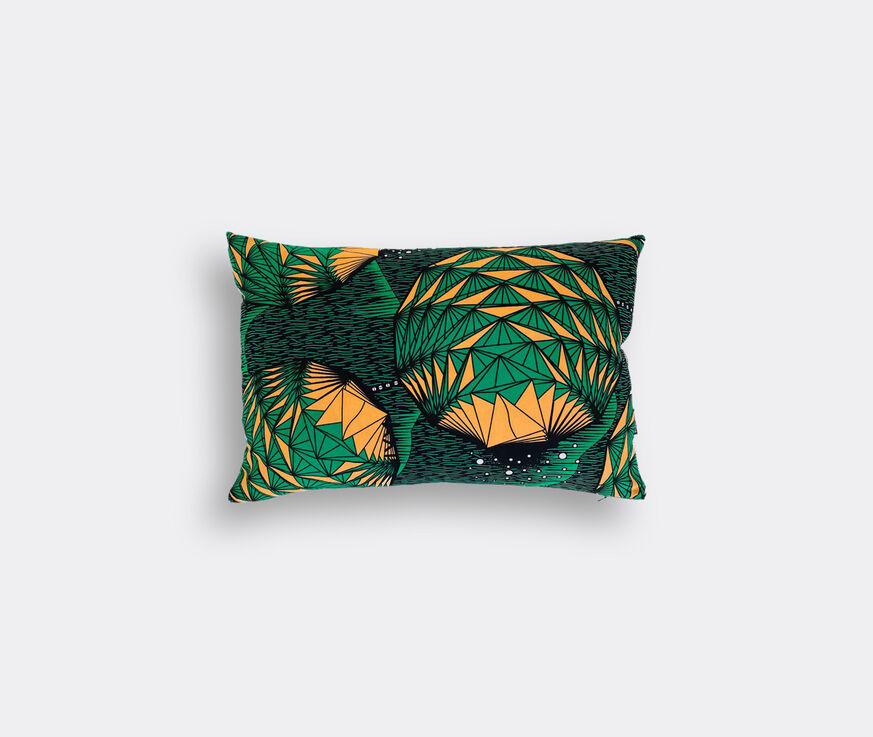 Scandi cool meets West African expression at Mumutane, a Danish B Corp brand dedicated to producing home textiles with positive social and ethical impact at the fore. The result is a collection of lively cushions, created in collaboration with small textile shops in West Africa and defined by vibrant graphics and color. The series includes the 'Iki Origami' cushion, a deep and mesmerizing pillow that combines a detailed origami pattern with shades of dark green and yellow, and which is cut from cotton wax on the front and a wool-blend fabric on the back. Supplied with an inner cushion.