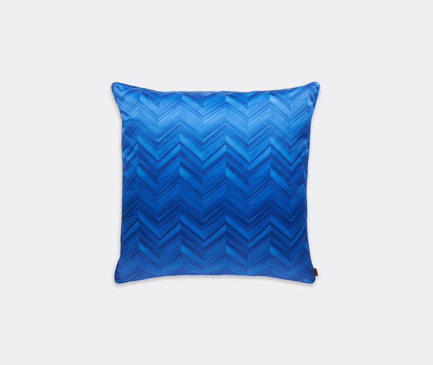 An elegant combination of cotton sateen and Missoni's signature chevron motif, the 'Layers Inlay' collection makes for a series of memorable interior accents. This large square cushion bears the series' hallmark of a faded chevron pattern in deep blue, which is placed alongside a logo label for an interior presence that is subtle and yet unmistakably Missoni. The cushion is suited to a variety of environments in the home and can be displayed alone or as part of an ensemble with other colors from the collection.