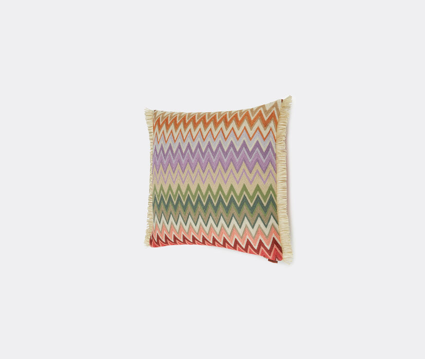 Pastel shades, vibrant oranges and deep reds come together in a striking assemblage for Missoni's dazzling 'Margot' cushion. Featuring contrasting micro bangs on two edges, the embroidered cushion is woven from a mix of cotton and viscose, and brings a luxurious punch of Missoni's signature style into living spaces.