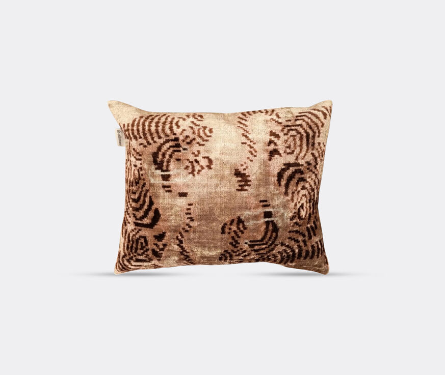 An abstract tiger print plays out in warm tones across this velvet cushion by Les-Ottomans. Bringing a touch of dynamic glamor to interiors, this subtly decadent design manifests in shades of golden brown and cream. Woven in a sumptuous mix of velvet and silk, a plain cotton background provides a contrasting option for subtler looks. Cushions can be layered with other pieces from the collection for striking displays.