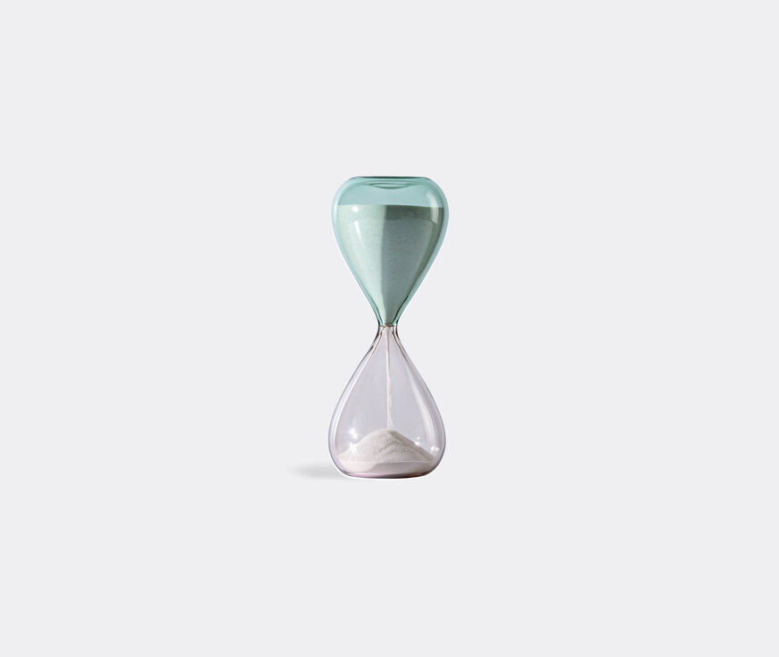 A colourful take on the traditional hourglass, this piece was designed by Paolo Venini in 1957. Handmade with Murano glass, the 'Clessidra' consists of two parts — green and pink — blown separately and fused together with a meticulous Venetian glassblowing technique known as incalmo.