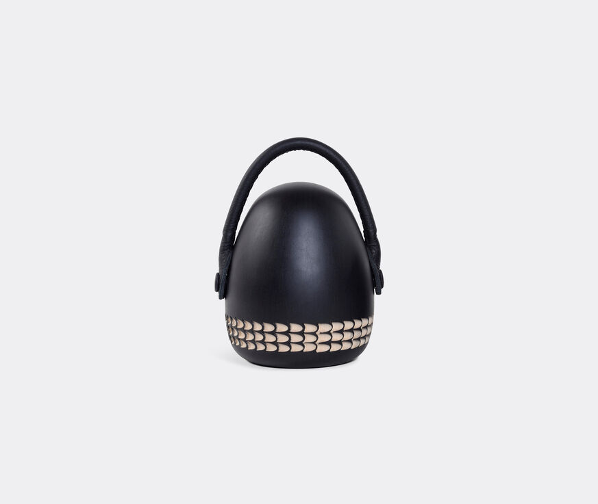 The result of one of many collaborations between Monica Förster and Bosnian brand Zanat, 'Stop Me' is object that beautifully marries functionality with beauty. Carved from black-stained maple wood, the small boulder offers a lasting presence, thanks to a captivating hand-carved cone base and a stitched leather handle. Use as a bookend, doorstop, or simply as a decorative object.