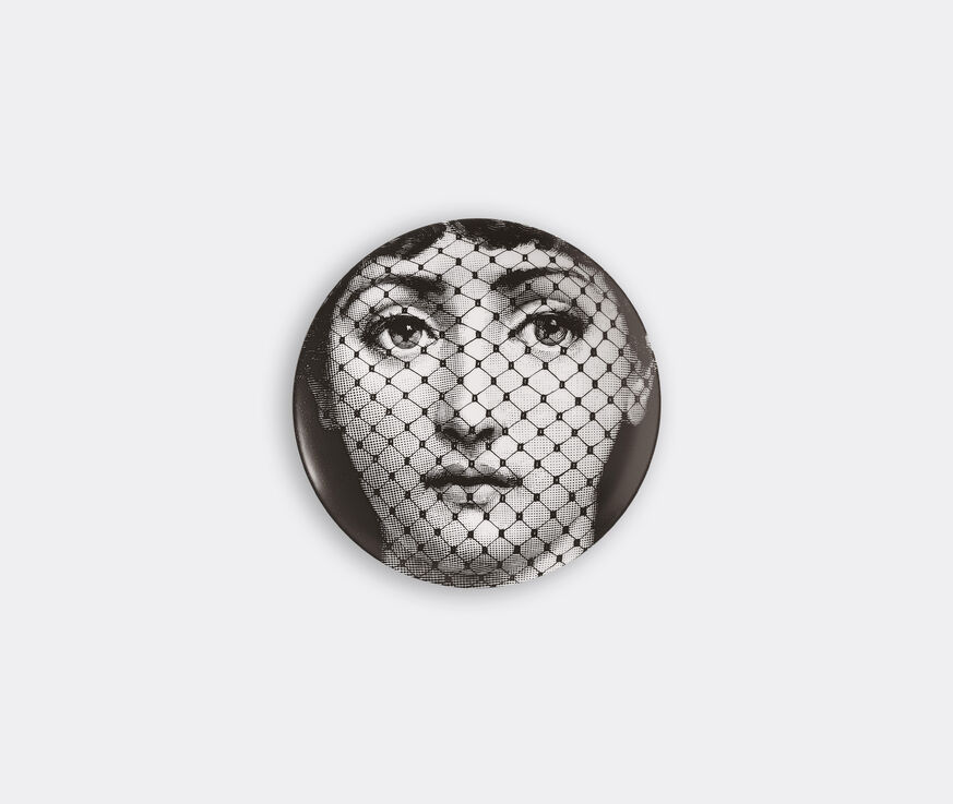 Fornasetti's 'Tema e Variazioni' collection brings together a series of hand-decorated pieces that each present a reinterpretation of the face of opera singer Lina Cavalieri. On 'Tema e Variazioni n.78', a black and white character is joined by a thin and elegant veil for an impactful piece that may be displayed on the table as a decorative item or hung on walls. Due to the handmade nature of this porcelain plate, only gentle cleansing with a damp cloth is recommended, without the use of soaps or solvents.
