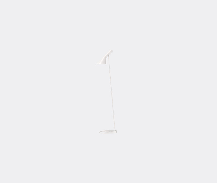 Emanating an ultra-modern mood over half a century since its inception, the 'AJ' floor lamp is an iconic statement in lighting design. Created in collaboration with Louis Poulsen, the lamp first appeared in the SAS Royal Hotel in Copenhagen in 1957 as part of a lighting story told throughout the hotel by world-renowned architect and designer Arne Jacobsen. Radiating personality, and recalling the geometric contours of Jacobsen buildings, the white version of this prominent feature light — whose shade can be tilted to adjust light distribution — adds a graphic, forward-focused feel to any space. Supplied with a US plug. The bulb is not included.