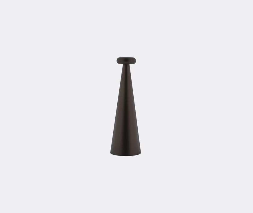 Alessi upturns classic proportions in this striking table lamp design. By expanding the base and narrowing the head into a conical tower, light takes on a soft, ethereal glow in this futuristic piece by Alessandro Stabile. The single color of the 'Bedin' lamp, shown here in brown, creates graceful continuity, while a protective anodized finish gives texture to the light. This intuitive, portable design features touch technology, a wide brightness spectrum, and color temperature controls. Perfectly suited to living and working spaces, this sleek lighting solution can be easily moved around the home, creating instant atmosphere.