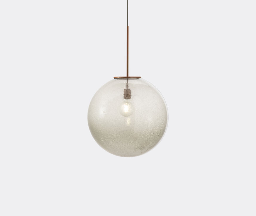 A classic sphere that continues a glass blowing tradition, Cassina's 'Bollicosa' pendant lamp is a celebration of all the complexities and nuances that arise from a very specific production technique . One such characteristic is a surface texture defined by the bubbles of the artisan's blow — these are present here and offer a rough and matte effect that also brings a slight opacity to the grey lamp.