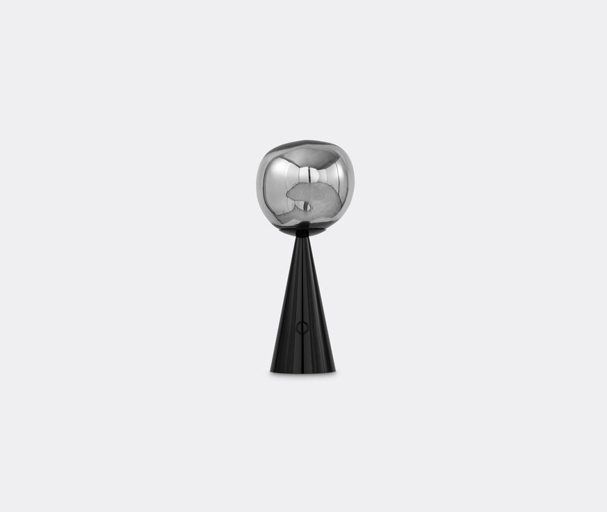 A new addition to Tom Dixon's 'Melt' collection, this portable LED lamp introduces an enchanting organic and naturalistic form into interior spaces. It's all rooted in the lamp's molten glass-like construction, created from half-metallized hot-blown glass, which is shaped into an imperfect sphere that sits atop a conical base. This black version of the portable lamp offers up to 10 hours of battery life on a full charge.