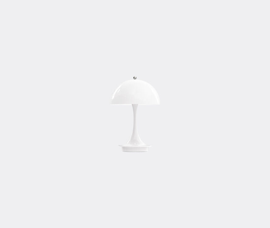 A compact, portable version of Verner Panton’s classic 1971 design, the 'Panthella 160 V2' for Louis Poulsen is a truly iconic mid-century modern statement. The lamp’s rounded shade directs light downwards, effusing a soft glow, while the trumpeted base reflects it back to create perfect uniformity of light. The silhouette of the hemispherical shade, exaggerated against the slim, tapering stand, recalls the space-age preoccupation of the era. Suitable for use throughout the home, the white opal version of the 'Panthella 160 V2' lamp is a bold, timeless addition to any space. The lamp features integrated LED.