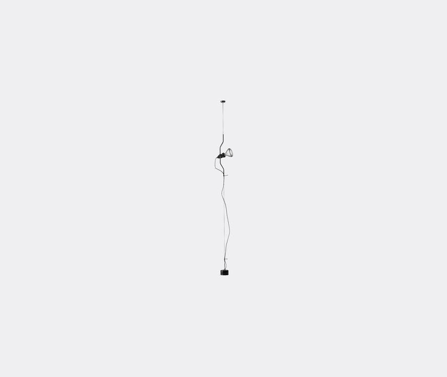 A sleek combination of practical design and formal minimalism, Achille Castiglioni and Pio Manzù's 'Parentesi' pendant lamp for Flos is an ode to simplicity. Bringing together a black painted shaped steel tube, among which the bulb rests, with a vertical four meter steel cable, the lamp offers direct light without a dimmer. This black version of the light source is supplied with an EU plug and additionally features a injection-molded fixture head that houses a switch for easy use. The bulb is not included, but is purchasable separately below.