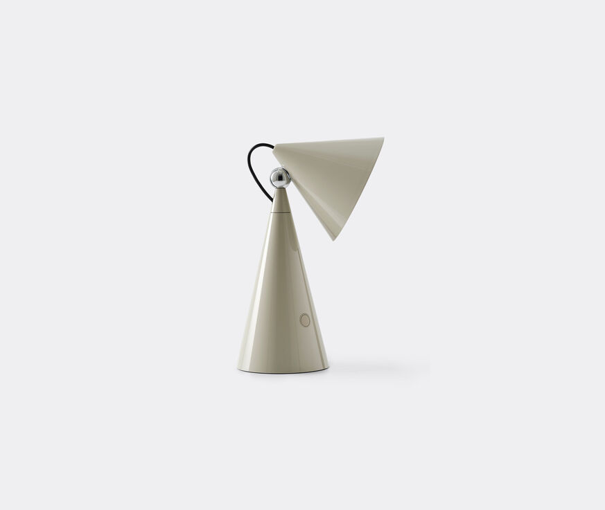 Tom Dixon's 'Pose' lamp playfully combines conical forms with an exploration of optical physics. The incorporation of flat lenses, typical of lighthouses, allows this portable design, with its graphic, anthropomorphic form, to manipulate light into focused, magnified beams. High-light output and precise adjustability make 'Pose' a functional modern statement that suits any space. The putty version of this LED lamp can be easily moved around the home, and runs for up to nine hours on a full charge.