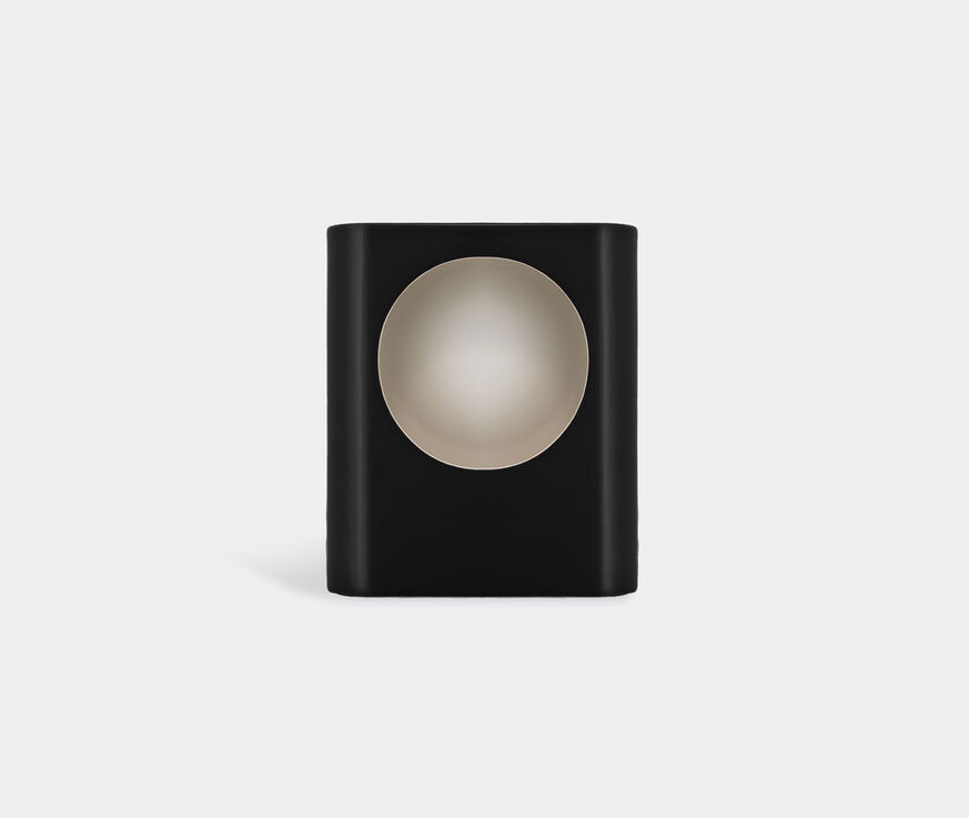 Two ceramic lanterns presented in two sizes and different colours form Raawii's debut lighting collection, named 'Signal'. Created by Swiss design studio Panter & Tourron in partnership with the Danish brand, the lamps are distinct for the subtle circular opening through which the light source shines and the corresponding subtle dome on the opposite side, inspired by the shape of vintage pocket Morse lamps. This vinyl black version of 'Signal' is supplied with an US plug and may be paired with a dimmable bulb to maximise the lamp's full gradient effect.
