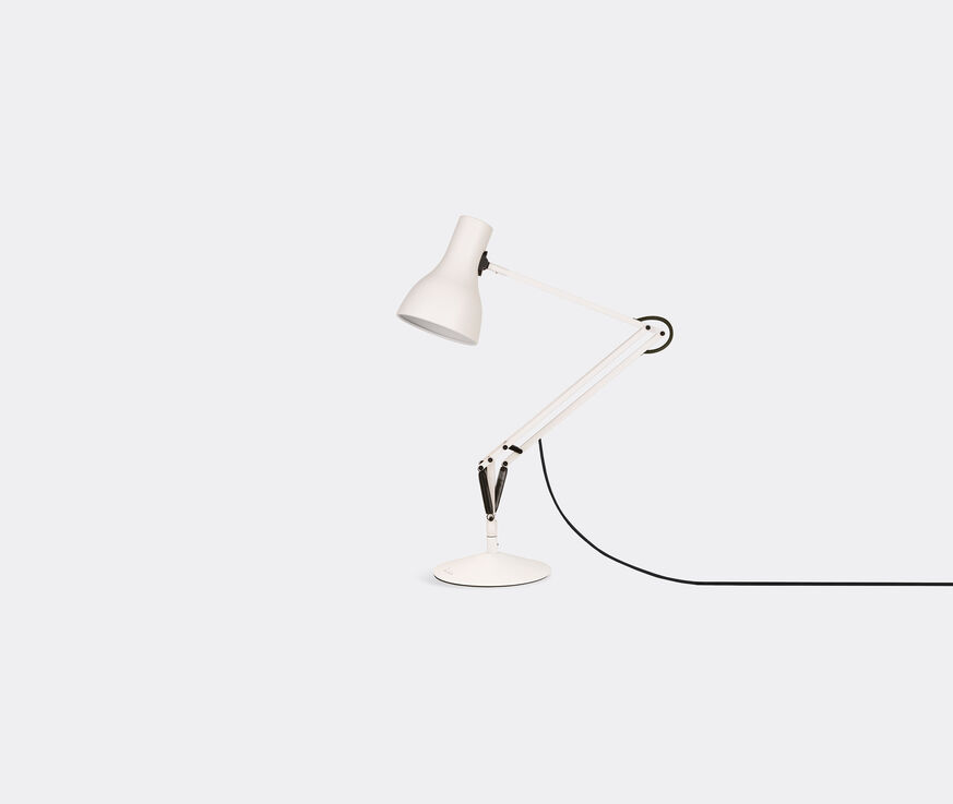 One of the newest pieces to evolve from the marriage of British designer Paul Smith's signature 'Artist Stripe' with Sir Kenneth Grange's 'Type 75' design, this full sized Anglepoise desk lamp merges two British classics to great effect. A full white finish is applied to an aluminum shade and arms, and a cast iron base with an aluminum cover, while Smith's distinct multicolor stripe is applied to the neck for a dramatic finish. This version of the lamp is supplied with a plug suited to EU sockets.