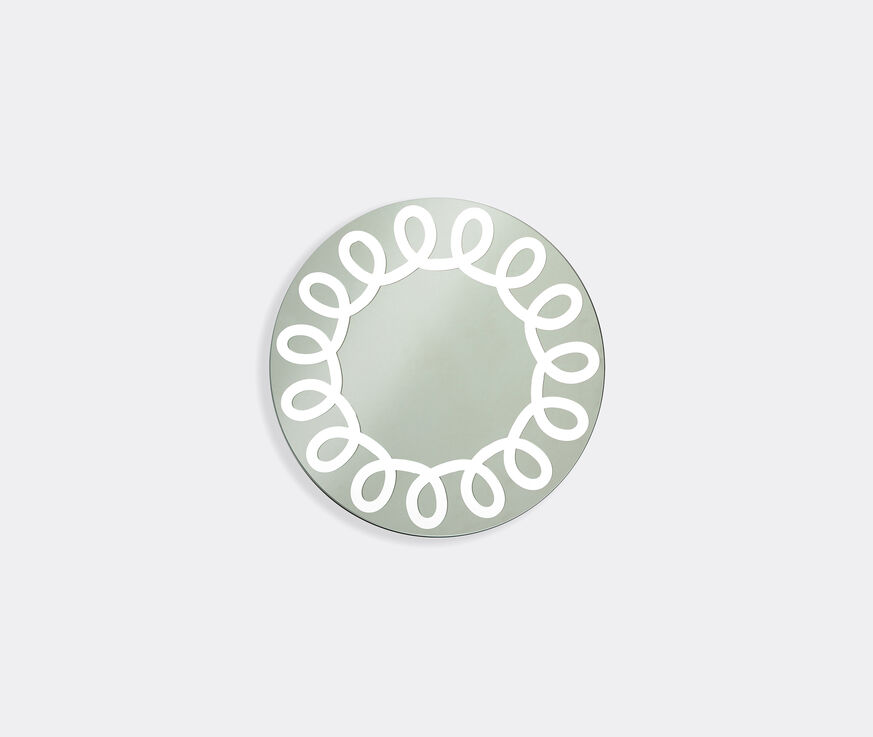 Paola Navone's playful mirror designs for Gervasoni 1882 blend simple shapes with hand-drawn lines. 'Brick 99' enlivens a classic circular mirror with freehand strokes on the glass, creating a frame around the face of the onlooker. Resembling a coiled telephone cord or a helix in a single white line, this simple yet stylized piece brings instant character and flair to spaces.