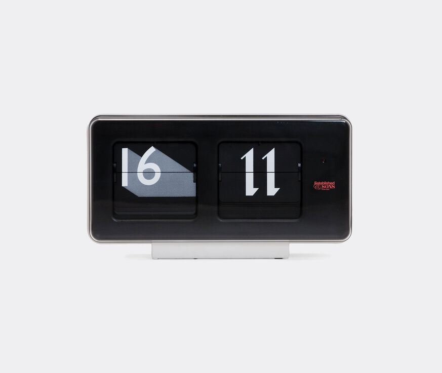 The iconic calendar clock is presented with a twist. Designed by Sebastian Wrong for Established and Sons, the 'Font' table clock Introduces an ever-changing display of twelve different typefaces. Spanning classic type families, like Bodon, to 20th century classics like Helvetica, every minute promises surprise and a fresh incarnation of this time-honoured model. The battery powered 'Font' was created with the Grayson Time Management system — the manufacturer responsible for providing the timekeeping for major institutions such as the London Stock Exchange.