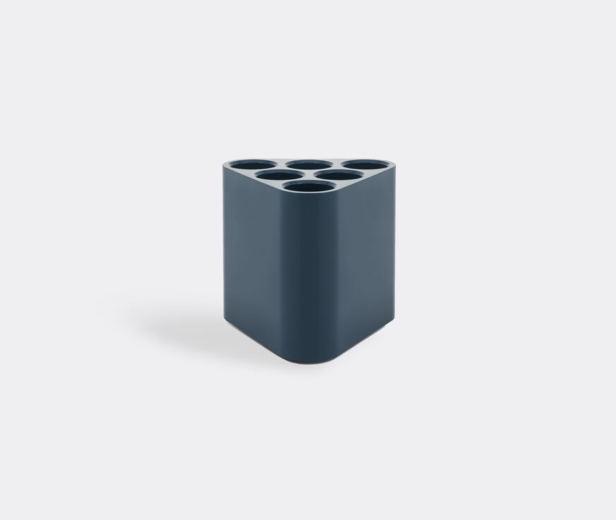 An imaginative new spin on the traditional umbrella holder, 'Poppins' is stylish, space efficient and, most importantly, functional. Designed by Edward Barber and Jay Osgerby — of Barber and Osgerby — for the Italian brand Magis, the triangular stand solves the issue of how to store both hooked umbrellas and fold up models. Crafted from dark blue ABS plastic and featuring six large holes, each deep enough to collect excess water and hold both extendable and full-length umbrellas, 'Poppins' is a neat and lightweight storage solution.