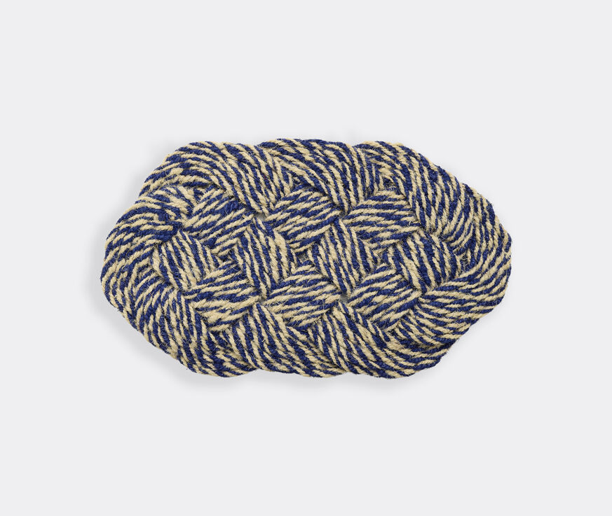 Iconic Danish brand Hay combines durability and a rustic expression in the 'Coco' doormat. Crafted from sustainable coir, the natural fiber extracted from coconut husks, the design features a braided pattern in shades of blue and off-white. This highly practical accent blends traditional craft and contemporary style, and adds a touch of charm to entranceways.