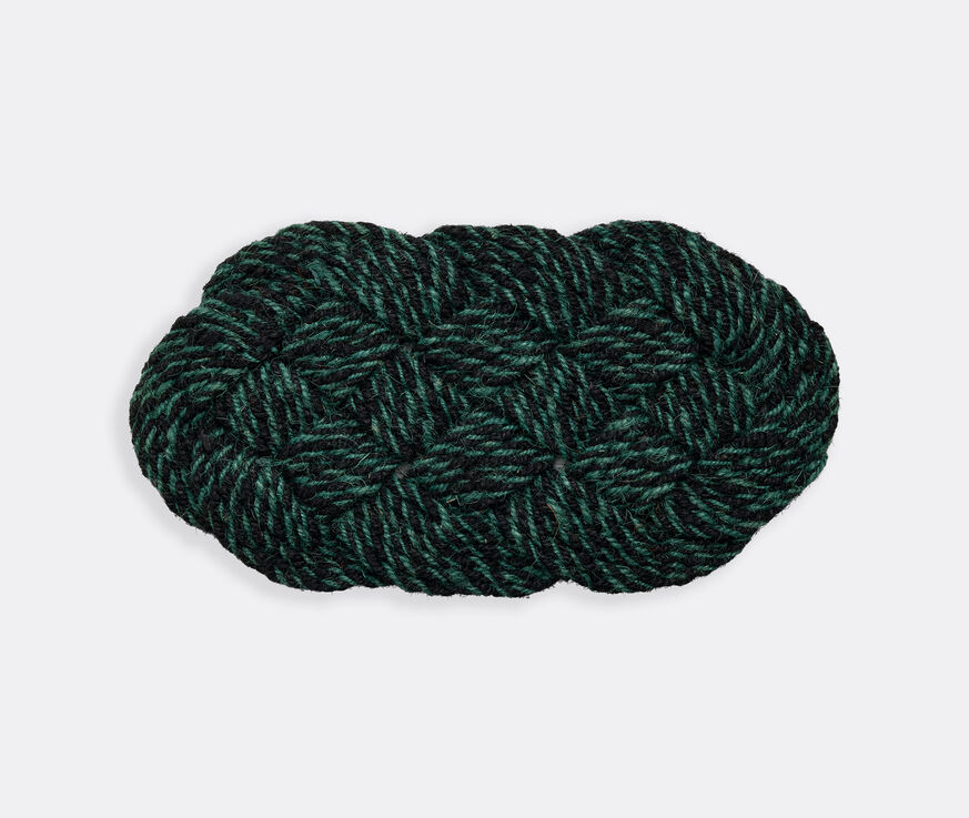 Iconic Danish brand Hay combines durability and a rustic expression in the 'Coco' doormat. Crafted from sustainable coir, the natural fiber extracted from coconut husks, the design features a braided pattern in shades of green and black. This highly practical accent blends traditional craft and contemporary style, and adds a touch of charm to entranceways.