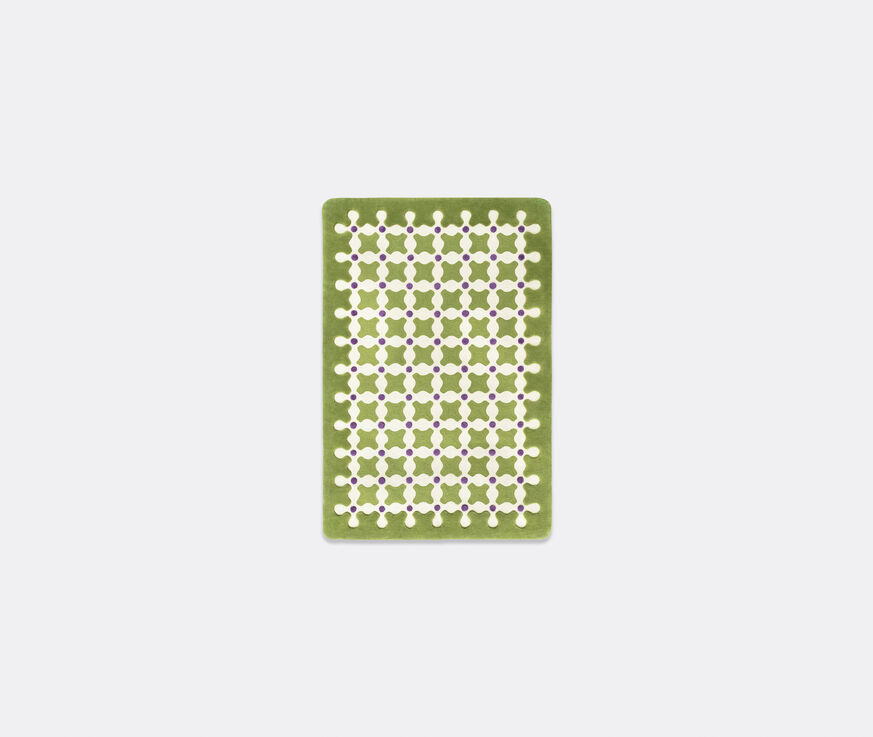 In a personal interpretation of tartan, French architect-designer India Mahdavi presents the 'Criss Cross' rug line for Cc-tapis. Rooted in heritage, the design sees geometric shapes repeat in a contemporary expression with a distinctly retro feel. The 'Criss Cross' rug in green is accented with white stylized crosses and lilac dots. Weaving a language of the traditional and the modern, this ultra-cool statement instantly enlivens and defines spaces.