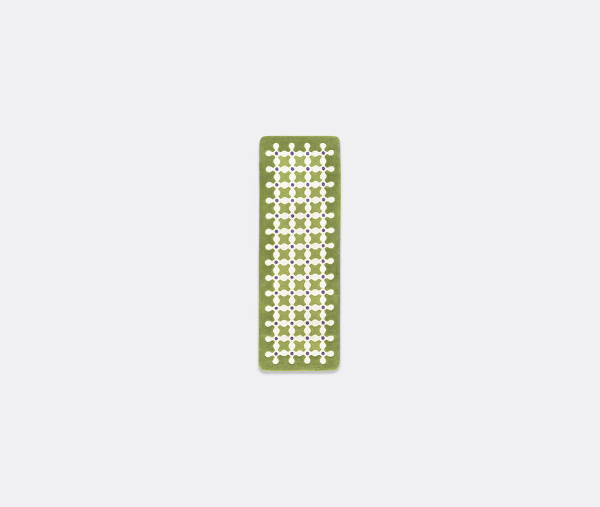 In a personal interpretation of tartan, French architect-designer India Mahdavi presents the 'Criss Cross' rug line for Cc-tapis. Rooted in heritage, the design sees geometric shapes repeat in a contemporary expression with a distinctly retro feel. The 'Criss Cross Runner' in green is accented with white stylized crosses and lilac dots. Weaving a language of the traditional and the modern, this ultra-cool statement instantly enlivens and defines spaces.