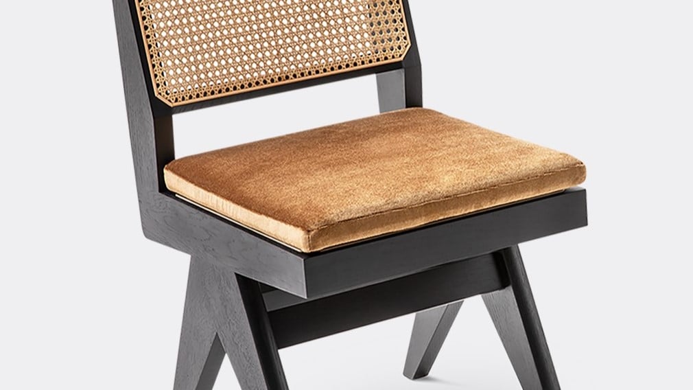 Found in the offices of the Secretariat Building in Chandigarh's Capitol Complex, the 'Capitol Complex' chair was developed by Italian brand Cassina in tribute to Pierre Jeanneret, cousin of Le Corbusier and designer of a host of furniture throughout the complex. Defined by independent pieces that include oak wood side bars in an inverted 'V', which support the armrests, and a Viennese straw backrest and seat stretched across wooden frames, the chair manages to be both simple and powerful. The 'Capitol Complex' cushion is not included, but is purchasable separately below.