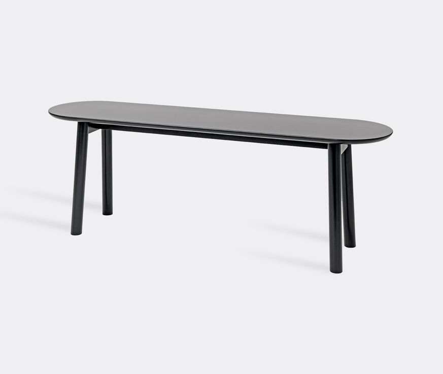 The humble bench becomes a focal point thanks to the deft hand of Earnest Studio. Produced by German brand Schönbuch, 'Mala' is crafted from solid wood finished in slate black for a minimalist aesthetic that is at once timeless and contemporary. Defined by simple curved lines and a clear functionality, this larger version of the minimalist bench may be placed in entrance halls and living spaces, either as a seat or a compact storage unit for small items.
