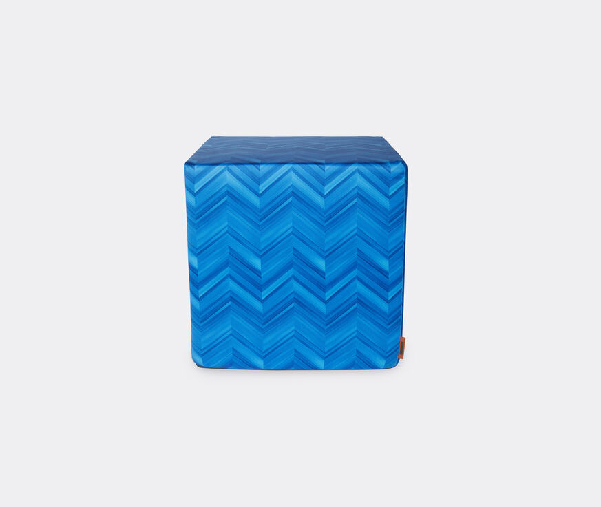 An elegant combination of cotton sateen and Missoni's signature chevron motif, the 'Layers Inlay' pouf is a memorable interior accent. The cubed item features a logo label alongside a shaded zigzag pattern in sea blue for a subtle presence that is unmistakably Missoni and a pouf that is suited to a variety of decor styles and environments.