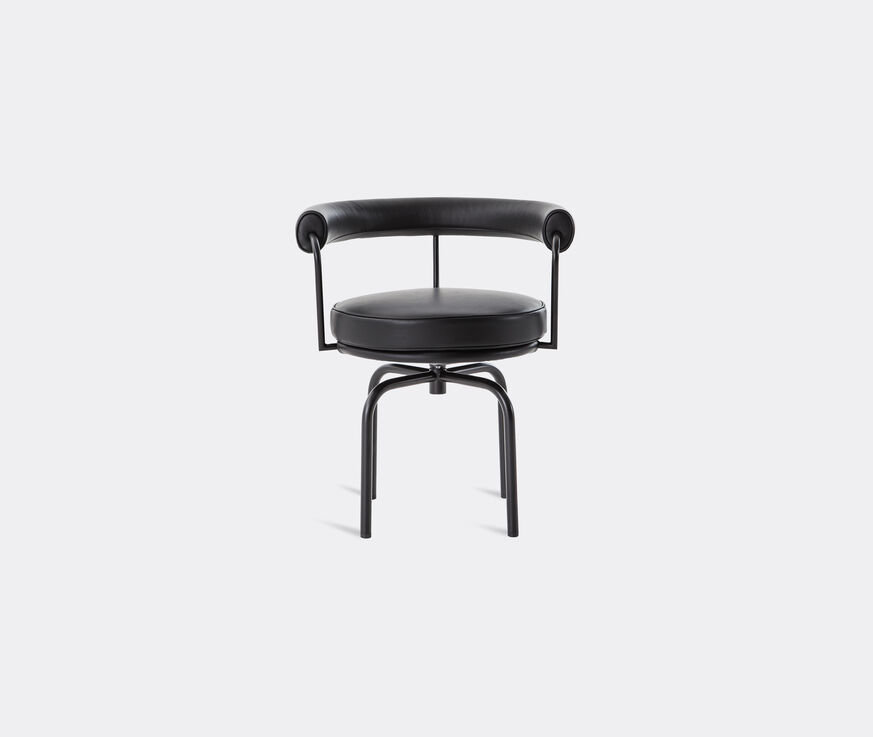 An iconic chair designed by Charlotte Perriand and part of her 'LC' collection co-created with Le Corbusier and Pierre Jeanneret, 'Swivel' has steadily gained fans over the decades thanks to its versatility and functionality. Designed in 1927, the chair was originally created by Perriand for her Paris apartment and was exhibited the next year at the Salon des Artistes Décorateurs and then the Salon d'Automne in 1929. Combining four black enamel legs with a black leather upholstered swivel seat, the chair is suited to domestic and office settings alike.