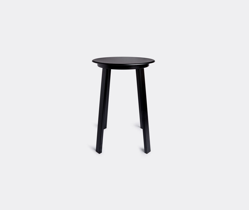 Slim, simple and discrete, Leon Ransmeier's 'Revolver' stool is a seamless amalgamation of comfort and style. A slightly dipped seat with curved edges sits in smooth contrast with four linear legs for a silhouette that is both compelling and straightforward, and does not reveal the workings of the stool's inner bearing mechanism that allows the seat to rotate 360 degrees. Crafted from powder-coated steel, the low black stool is suited to both public and residential spaces.