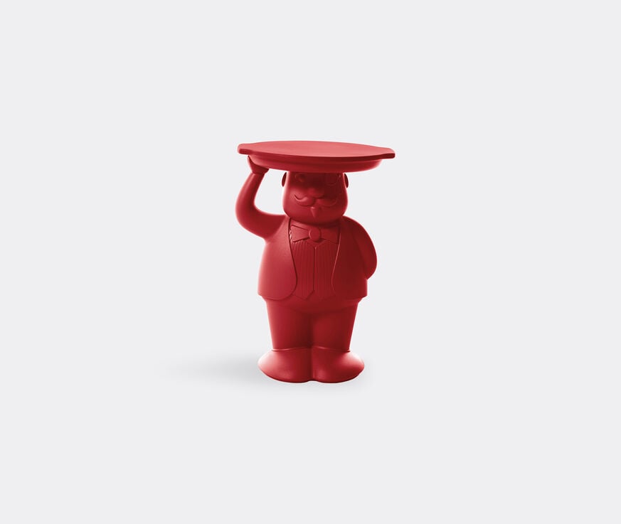 The pedestal of this table by Italian brand Slide manifests as the stylized figure of a butler, with a monocle and moustache, carrying a circular ‘tray’ on his head. Presented in a bold flame red, this sculptural and sustainable design piece is cut from 100% recycled EcoAllene. Giving a second life to plastic in Tetrapack boxes, 'Ambrogio' is presented in milky white, and brings function and flair to contemporary spaces.