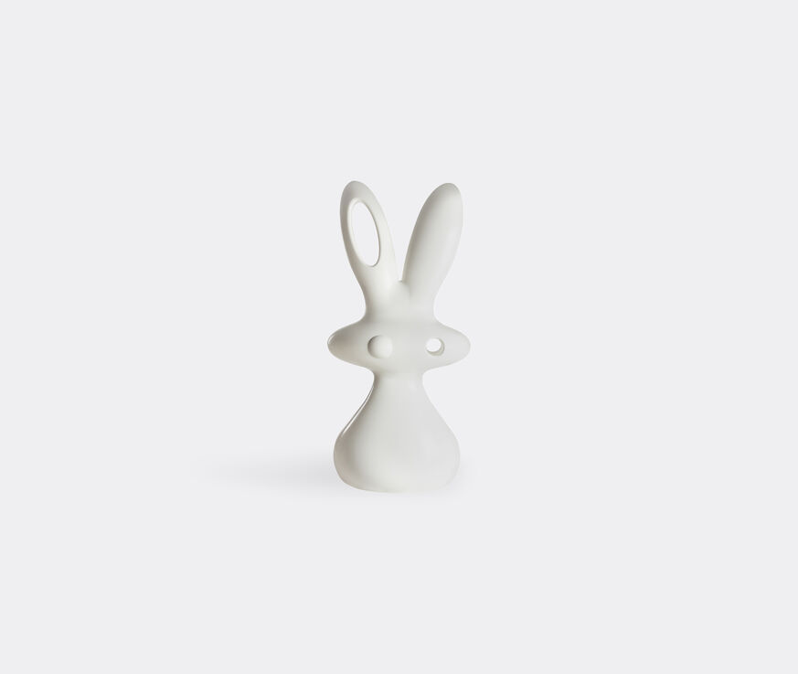 Designed by Aki Kuroda, 'Bunny' is part of the SLIDE Art project, which merges artistic expression with design objects for the home. Produced in small batches to coincide with the Chinese Year of the Rabbit, this decorative sculpture and furniture item is created by way of rotational moulding and presented in milky white. Cut-out sections in one ear and one eye create playful asymmetry within a bold, symmetrical silhouette. Whether used as an alternative side table, or as a free-standing object to add humor and color to spaces, this idiosyncratic design radically transforms living environments indoors and out.