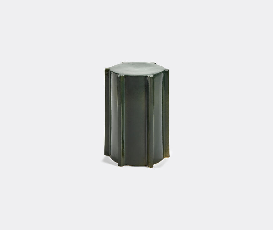The 'Pawn' side table by Marie Michielssen for Serax, which doubles as a stool, combines geometry and rich colored green glazed stone in a versatile, timeless piece that traverses the ancient and the modern. Vertical ribs make for a character-filled, tactile design that, by also providing traction, allows ‘Pawn’ to be moved around easily, enjoyed throughout the home.