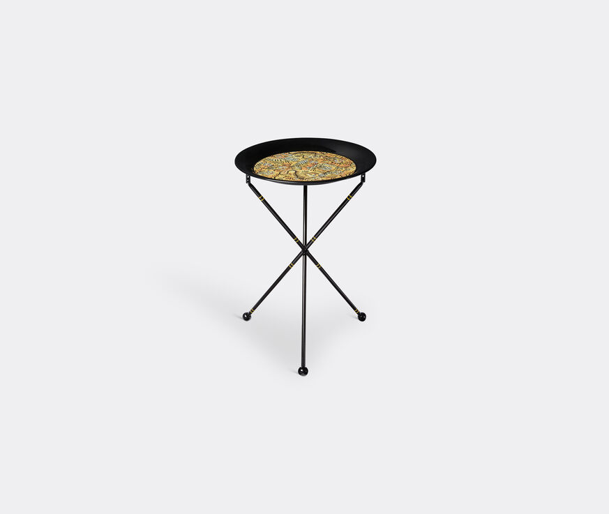 The tiger is a regular and powerful motif in Alessandro Michele's ready-to-wear collections for Gucci and now makes an appearance in this small tiger print folding table taken from the Gucci Décor collection. Crafted from black metal, the foldable table comprises a tray emblazoned with a tiger print atop three legs and features a ring that allows it to hang. The result is a functional table that incorporates all of the boldness and élan that has made Gucci one of the world's foremost fashion brands.